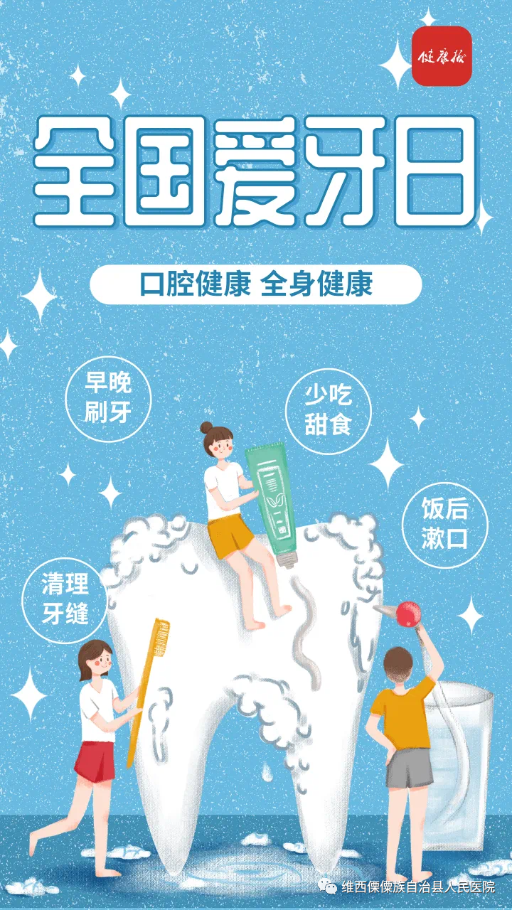 每年9月20日是全国“爱牙日”,2023年9月20日是第35个“全国爱牙日”,今年宣传主题是“口腔健康全身健康”,副主题是“关爱老年口腔乐享健康生活”。为加大口腔防治知识宣传教育,增强口腔健康观念和口腔保健知识,建立口腔保健行为,重点关注老年人口腔健康,营造有利于口腔健康的良好社会氛围。9月20日上午维西县人民医院口腔科将开展以“口腔健康,全身健康”为主题全国爱牙日的义诊活动。